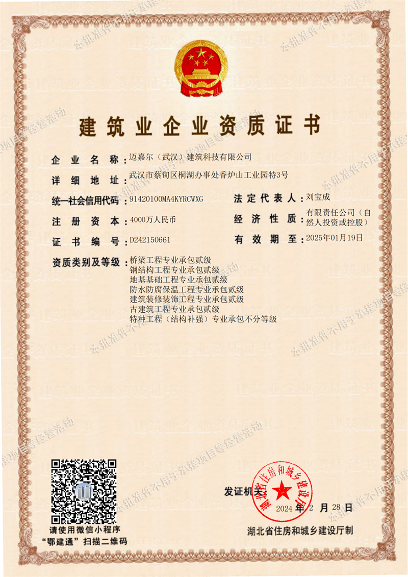 自成立以来,我司已荣获省级专精特新企业称号,连续5年荣获高新技术企业,3次荣获瞪羚企业认证。并获得国家及相关行业协会的认可,获得守合同重信用企业、ISO体系认证、安全生产许可证、3A信用企业证书、绿色低碳诚信示范企业、绿色低碳建材领域新技术与产品推广证书等。